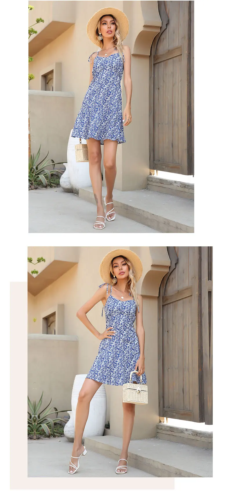 New Sweet Suspender Backless Floral Slim Vest Dress